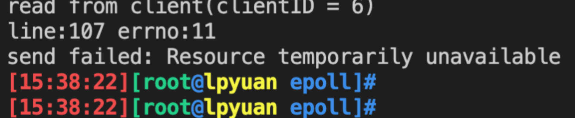 int epoll_events_count = epoll_wait(epfd, events, EPOLL_SIZE, -1); if(epoll_events_count < 0){ perror("epoll_wait failed"); break; } printf("epoll_events_count:%d\n", epoll_events_count);